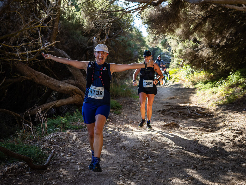 Runners come through this Water Point on the Cape to Cape walking track and spectators can check their progress, give them support and set them on their way. Runners can also access the race hydration and nutrition supplied by the event AND / OR receive additional items from support crews.